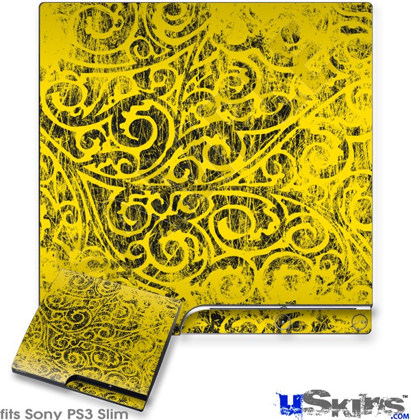 Decal Skin compatible with Sony PS3 Slim Folder Doodles Yellow