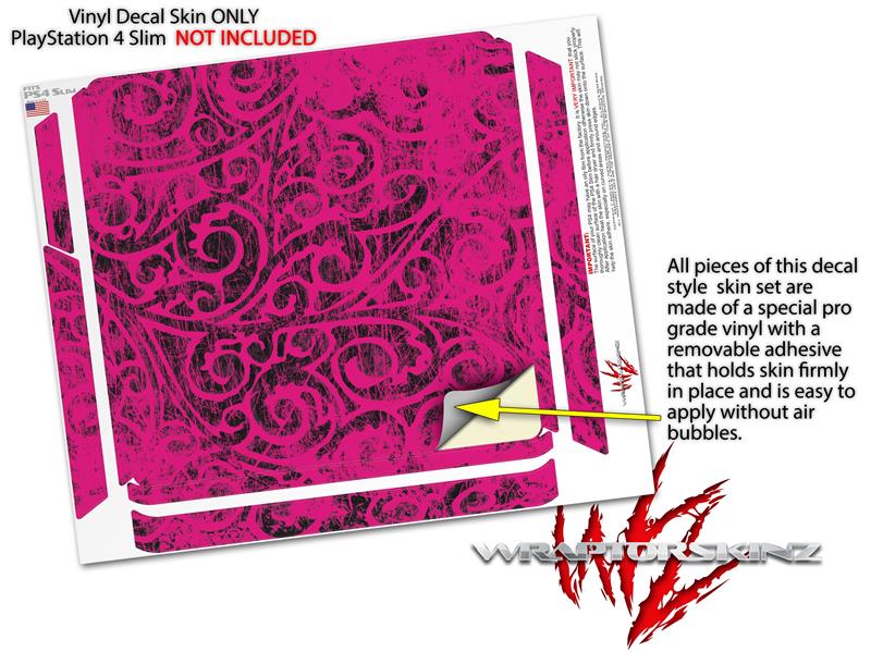 Vinyl Decal Skin Wrap compatible with Sony PlayStation 4 Slim Console Folder Doodles Fuchsia (PS4 NOT INCLUDED)