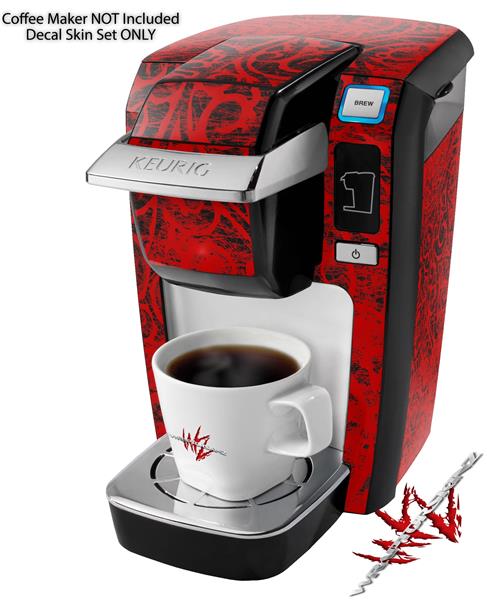 Decal Style Vinyl Skin compatible with Keurig K10 / K15 Mini Plus Coffee Makers Folder Doodles Red (KEURIG NOT INCLUDED)