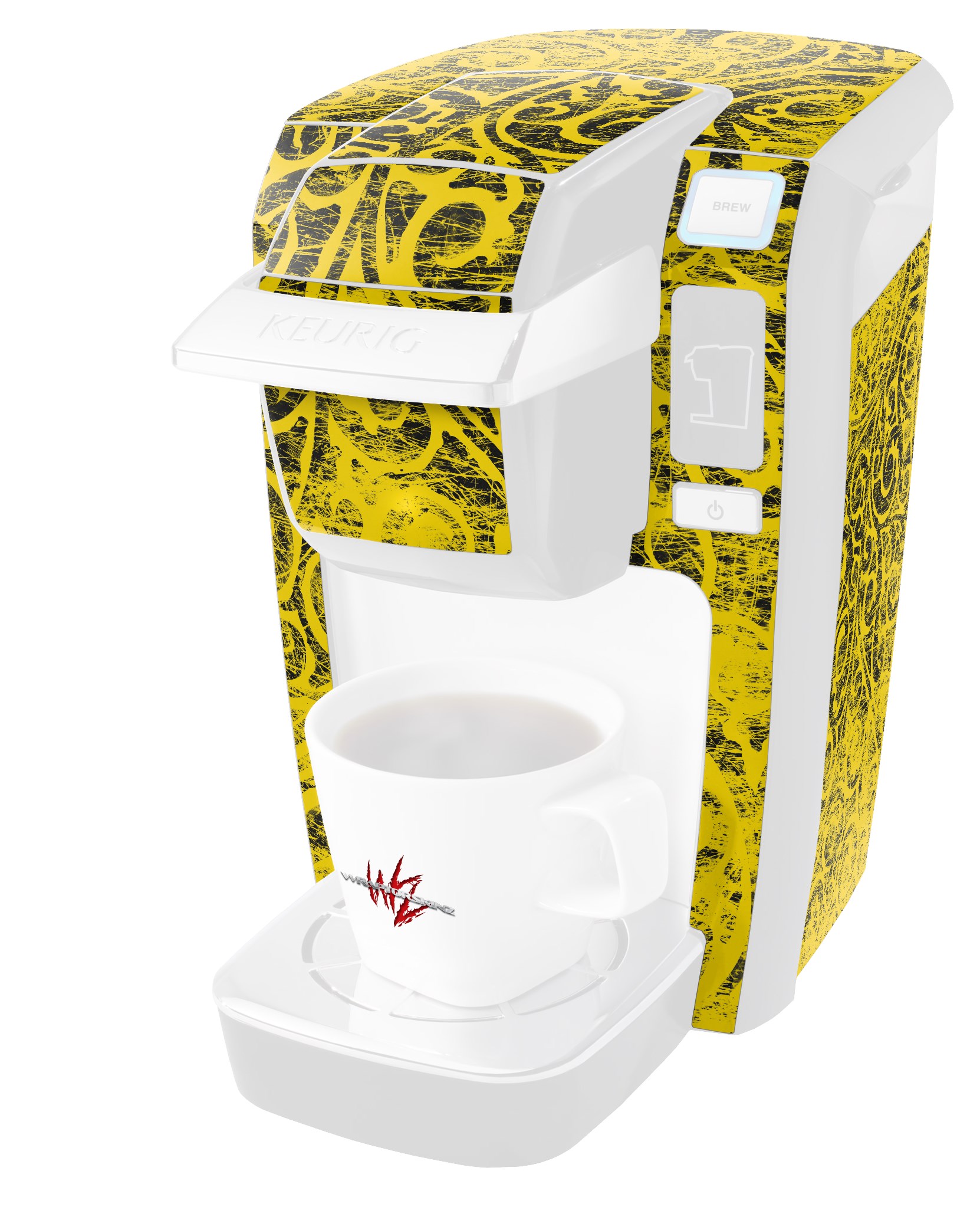 Decal Style Vinyl Skin compatible with Keurig K10 / K15 Mini Plus Coffee Makers Folder Doodles Yellow (KEURIG NOT INCLUDED)