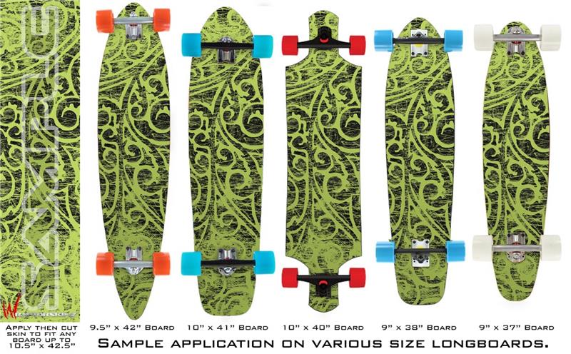 Our longboard skins are made so that one size fits boards up to 10” wide x 42” long. This means after applying the skin it you will trimming to fit you’re the shape of your board with a sharp utility knife.