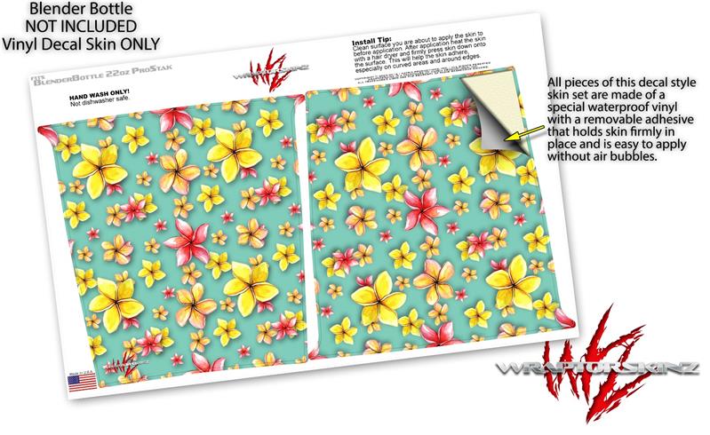 Decal Style Skin Wrap works with Blender Bottle 22oz ProStak Beach Flowers Seafoam Green (BOTTLE NOT INCLUDED)