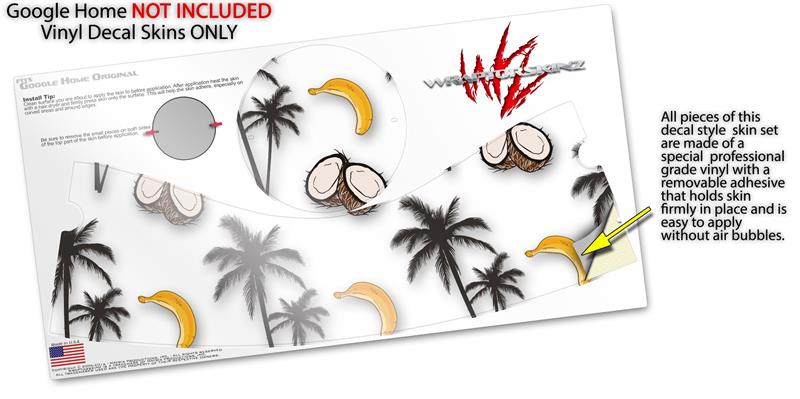 Decal Style Skin Wrap for Google Home Original - Coconuts Palm Trees and Bananas White (GOOGLE HOME NOT INCLUDED)