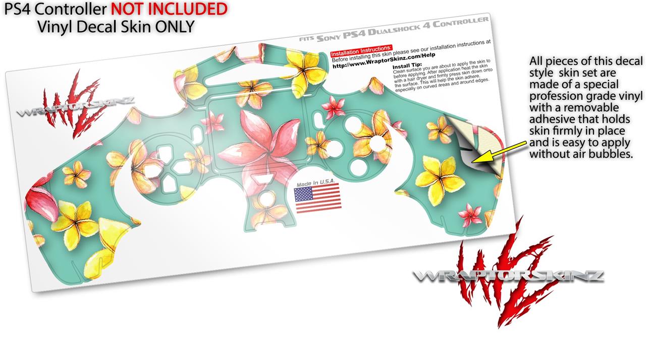WraptorSkinz Skin compatible with Sony PS4 Dualshock Controller PlayStation 4 Original Slim and Pro Beach Flowers Seafoam Green (CONTROLLER NOT INCLUDED)