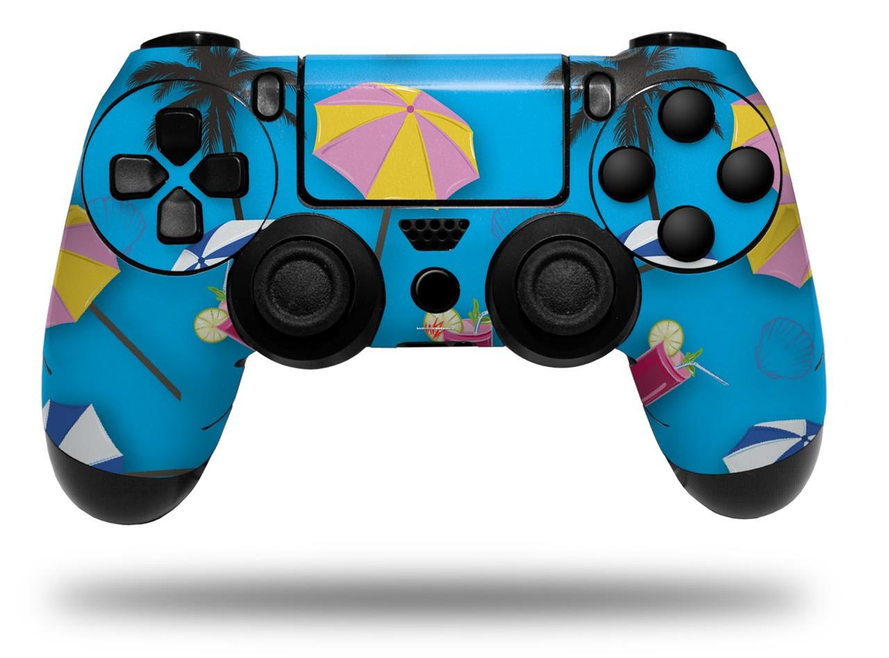 WraptorSkinz Skin compatible with Sony PS4 Dualshock Controller PlayStation 4 Original Slim and Pro Beach Party Umbrellas Blue Medium (CONTROLLER NOT INCLUDED)