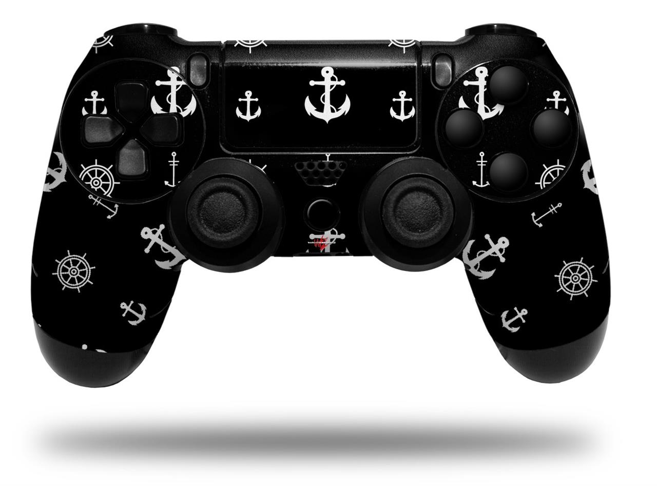 WraptorSkinz Skin compatible with Sony PS4 Dualshock Controller PlayStation 4 Original Slim and Pro Nautical Anchors Away 02 Black (CONTROLLER NOT INCLUDED)