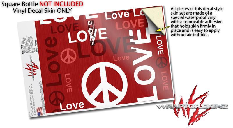 Skin Decal Wrap for Clean Bottle Square Titan Plastic 25oz Love and Peace Red (BOTTLE NOT INCLUDED)
