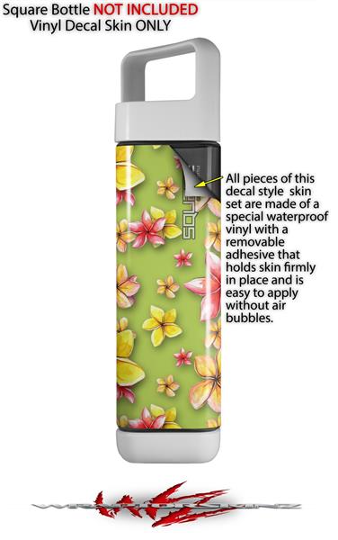 Skin Decal Wrap for Clean Bottle Square Titan Plastic 25oz Beach Flowers Sage Green (BOTTLE NOT INCLUDED)