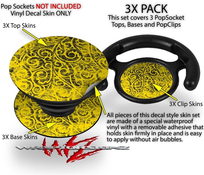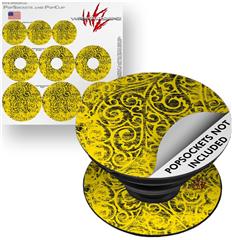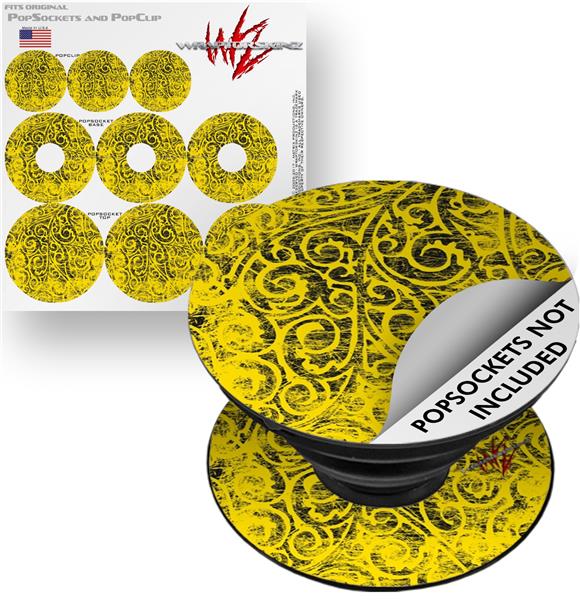 Decal Style Vinyl Skin Wrap 3 Pack for PopSockets Folder Doodles Yellow (POPSOCKET NOT INCLUDED)